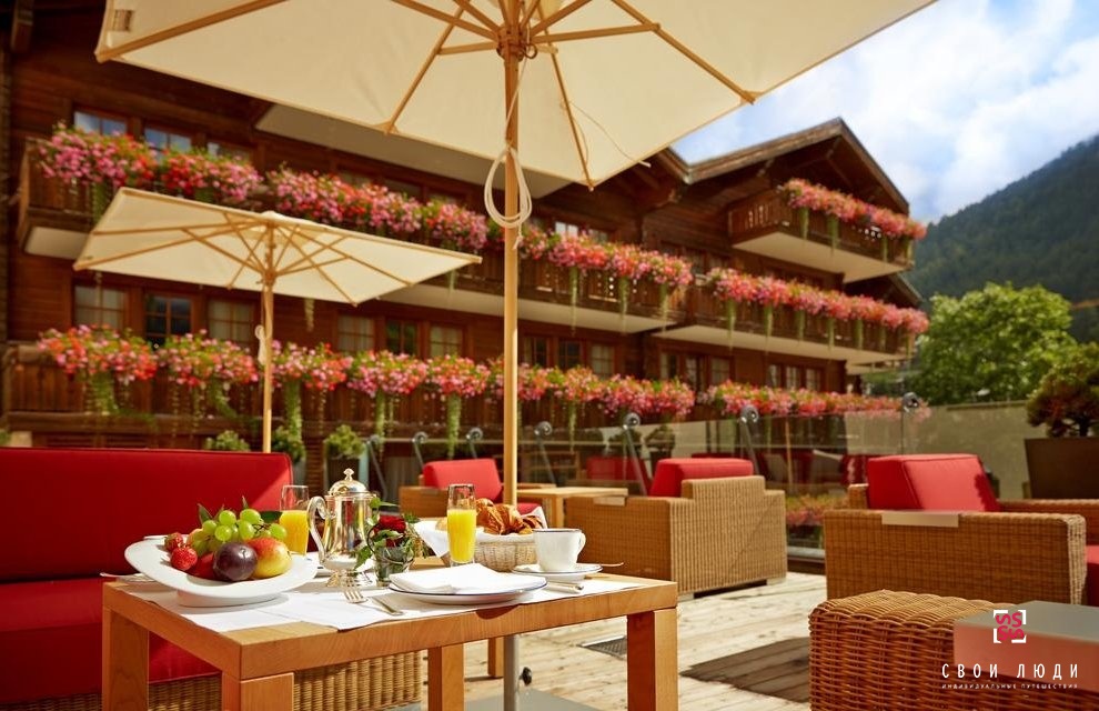 Больше всего в Zermatterhof 5* (около 20) номеров типа Deluxe double/twin room. Их площадь 30 кв. м, имеется ванна или джакузи, в спальне – двойная кровать. Некоторые номера такого типа имеют балкон с очень привлекательным обзором.