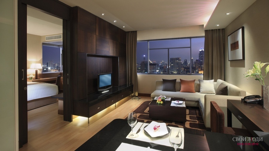 Так, отель располагает 106 великолепными Silver room, площадь которых варьируется от 29-ти и до 36-ти «квадратов». 22 отличных Gold room имеют площадь от 44-ех до 52-х м2. также отдыхающим предложат 133 шикарных апартамента Platinum и 90 покоев Diamond. Предметом особой гордости администрации Grand Sukhumvit Hotel Bangkok 5* является дюжина потрясающих президентских двуспальных сьютов, парочка королевских сьютов, а также 4 превосходных сьюта на три спальни.