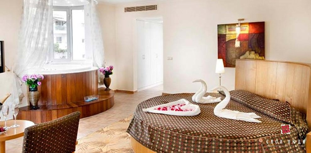 Это хорошее место для отдыха с детьми, для них организованы все удобства: от питания до развлечений. Вокруг отеля большой зеленый сад, рядом удобный пляж. Много номеров: отель состоит из двух шестиэтажных и двух пятиэтажных корпусов, 10 бунгало (по 2-3 этажа) и виллы. На всей территории комплекса работает беспроводной интернет.