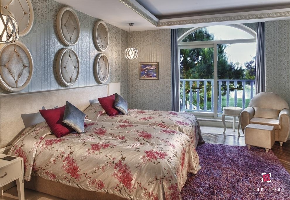 В отдельной двух этажной вилле площадью 350 кв.м, расположенной на территории гольф-поля «Montgomerie Maxx Royal», имеются частный открытый бассейн, 2 спальни, гостиная, столовая, кухня, вестибюль, ванная с джакузи и душем, ванная с сауной и душем, турецкая баня с душем и комната для прислуги. Размещение: 4 взрослых + 1 ребенок.