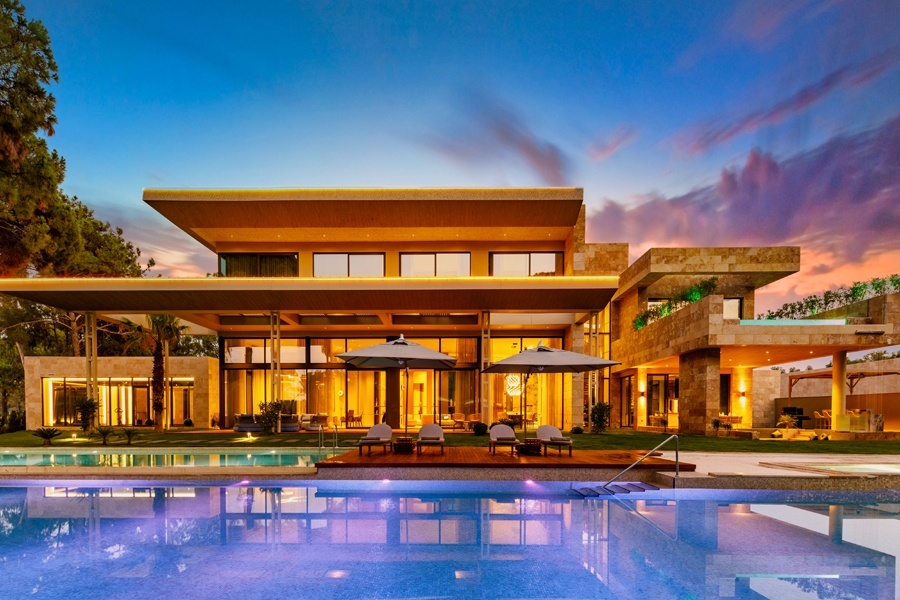 В Palazzo Mansions все продумано до мелочей. Особняки стоят в самом тихом месте курорта, но при этом до любой его части, будь то частный пляж или поле для гольфа, рукой подать. Пройдя все формальности по заселению, отдыхающие попадают в свой персональный рай через высокие двери оттенка состаренного золота — современная интерпретация османского стиля. Минималистичный интерьер создан с помощью вещей и аксессуаров от турецких и итальянских мануфактур и фабрик. Но первое, что бросается в глаза, — высокие потолки и открытое пространство. За огромной территорией курорта тщательно следят и ухаживают.