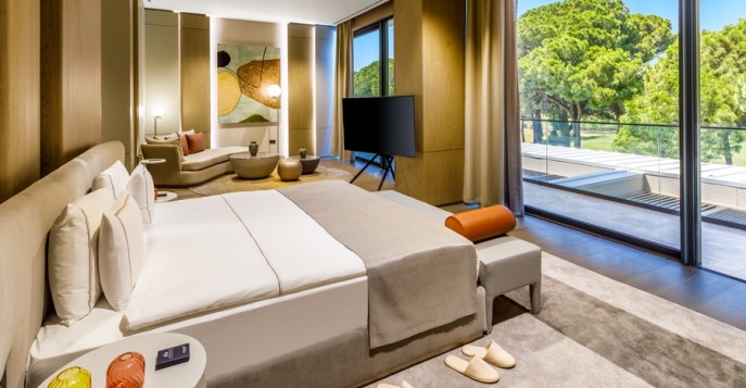 Fast Track в аэропорту Анталии (прилет), CIP терминал в аэропорту Анталии (вылет), VIP трансфер из аэропорта Анталии и обратно, макси бар и набор снеков, услуга подготовки комнаты ко сну, газета в номер, цветы, отдельный пляж и пирс Palazzo Mansions, павильон на пирсе Palazzo Mansions, гольф мобиль, меню обслуживания номеров, пользование ресторанами A’la Carte, пользование ресторанами Palazzo Lounge, прачечная, батлер, Palazzo ассистент, персональный урок по гольфу с инструктором (1 раз за период проживания)