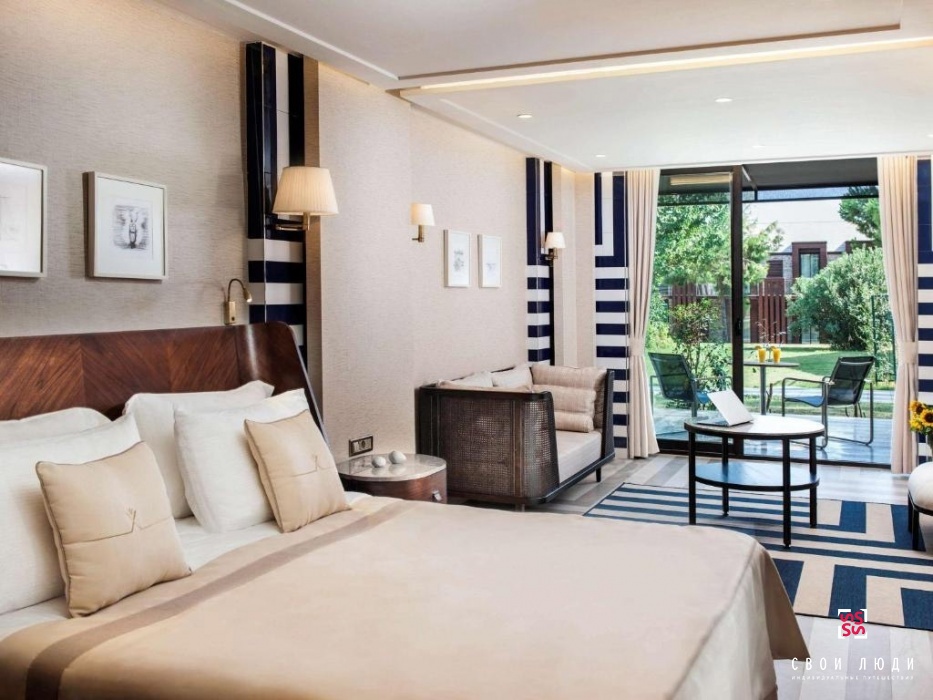Люкс Deluxe. Отдохните у соснового леса, остановившись в одном из люксов Deluxe. Люксы площадью 45 кв. м. предлагают отдельную террасу с видом на сад и прямой доступ к бассейну курорта. К вашим услугам водный шатл до уединенного пляжа.