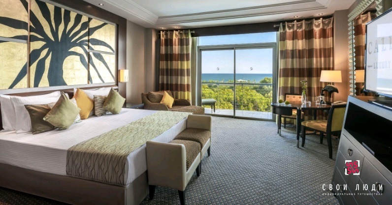 Роскошный отель Calista Luxury Resort 5* располагает огромным номерным фондом. Среди разнообразия номеров каждый сможет найти вариант, который оптимально ему подойдет. Больше всего в отеле стандартных номеров – 404, они достаточно просторные, здесь, конечно же, есть все необходимое. В гостинице насчитывается 63 семейных номера, которые пользуются огромным спросом, ведь здесь любят отдыхать семейные пары с детьми. Такие комфортабельные номера состоят из нескольких этажей: на первом находится шикарная гостиная и просторная ванная комната, на втором – ванная комната, спальня, огромный балкон. Здесь без проблем могут разместиться двое взрослых путешественников и двое детей.