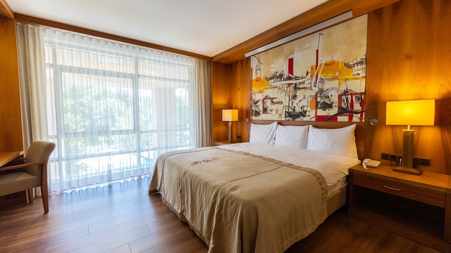 Комплекс двухэтажных вилл отеля Gloria Serenity Resort 5* (площадь каждой 86 кв.м) расположен в пышном зеленом саду на парковой территории отеля. В некоторых виллах гостиная и детская расположены на первом этаже, а спальня родителей - на втором. В некоторых виллах на первом этаже находится только гостиная, а детская и спальня родителей располагаются на втором этаже. Меблировка гостиных в виллах - круглый стол на 4 человека, гарнитур и просторный гардероб. На террасе виллы оборудованы стол на 4 человека, джакузи и 2 шезлонга. В детской стоят две односпальные кровати, к детской прилегает ванная комната. В спальне родителей кровать размера "king size", в ванной комнате - джакузи, отдельная душевая кабина, а также отдельный туалет. Каждая вилла насчитывает в общей сложности 3 плазменных телевизора LCD.
