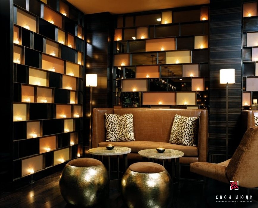 Из сезонного бассейна на крыше открываются виды на Линкольн-центр, здесь так приятно отдыхать в полдень и наблюдать за суетой Нью-Йорка с высоты птичьего полета. Вы можете заказать напиток в лаунж-баре на крыше или расслабиться в арендованных кабинах с плоскоэкранным телевизором, мини-холодильником и IPod докстанцией с динамиками.
