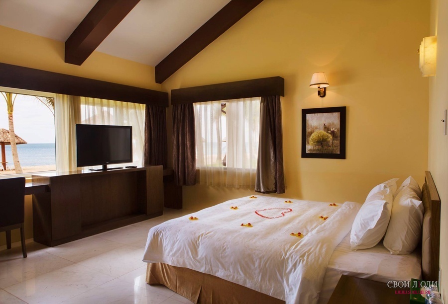 Beachfront Villa: просторная вилла площ47адью 75 кв. м, расположенная прямо на пляже, недалеко от бирюзовых волн океана. В ней есть большая гостиная с мини-баром, спальня с теплым полом и ванная с джакузи.