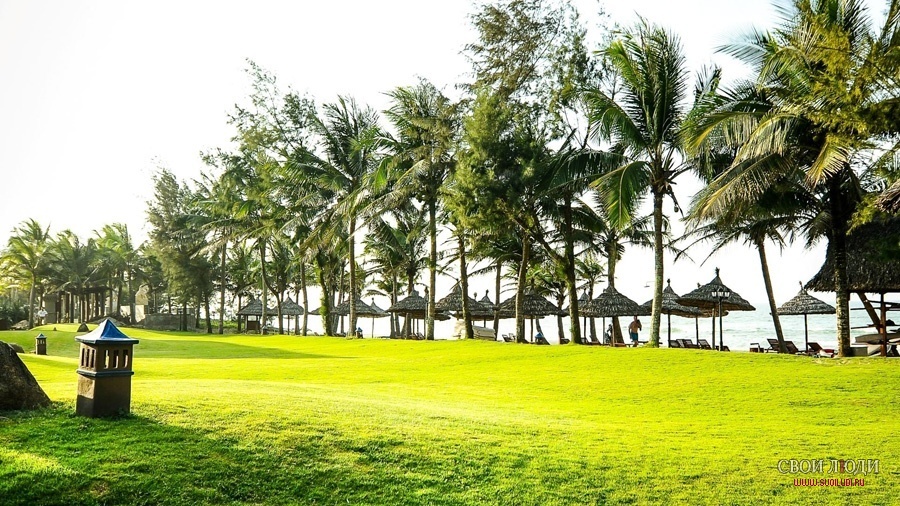 Пляж: собственный песчаный пляж Cua Dai с шезлонгами, зонтиками, пляжными полотенцами.