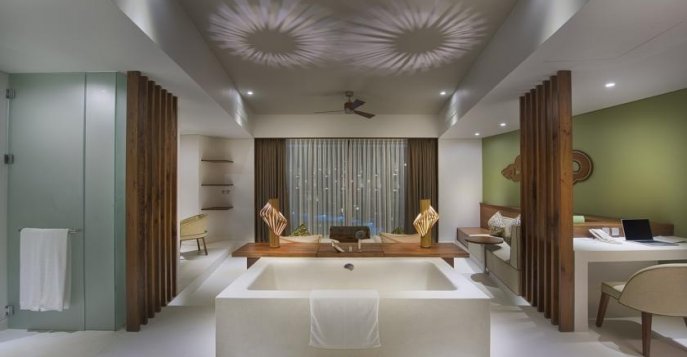 Luxury Suite Ocean View: номера повышенного уровня комфортности площадью 123 кв. м. В каждом из них есть спальня с кроватью King-size, большой балкон (55 кв. м.) с шезлонгами, с которого открываются великолепные виды на Сиамский залив, личный стол для массажа и индивидуальная косметическая зона.