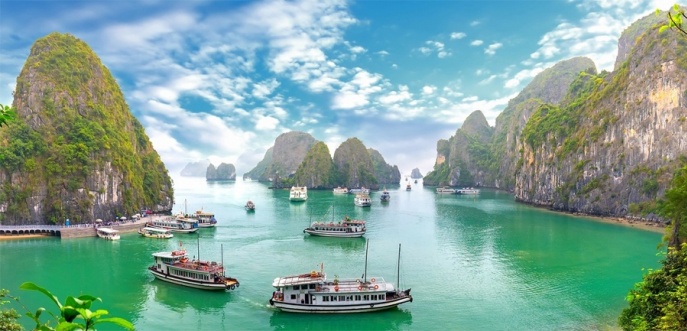 Завтрак и переезд в бухту Халонг. В 12:00 размещение на катере. Экскурсия по заливу Халонг с посещением пещеры. Возможно морское купание (в зависимости от погодных условий). Ужин и ночь в заливе.